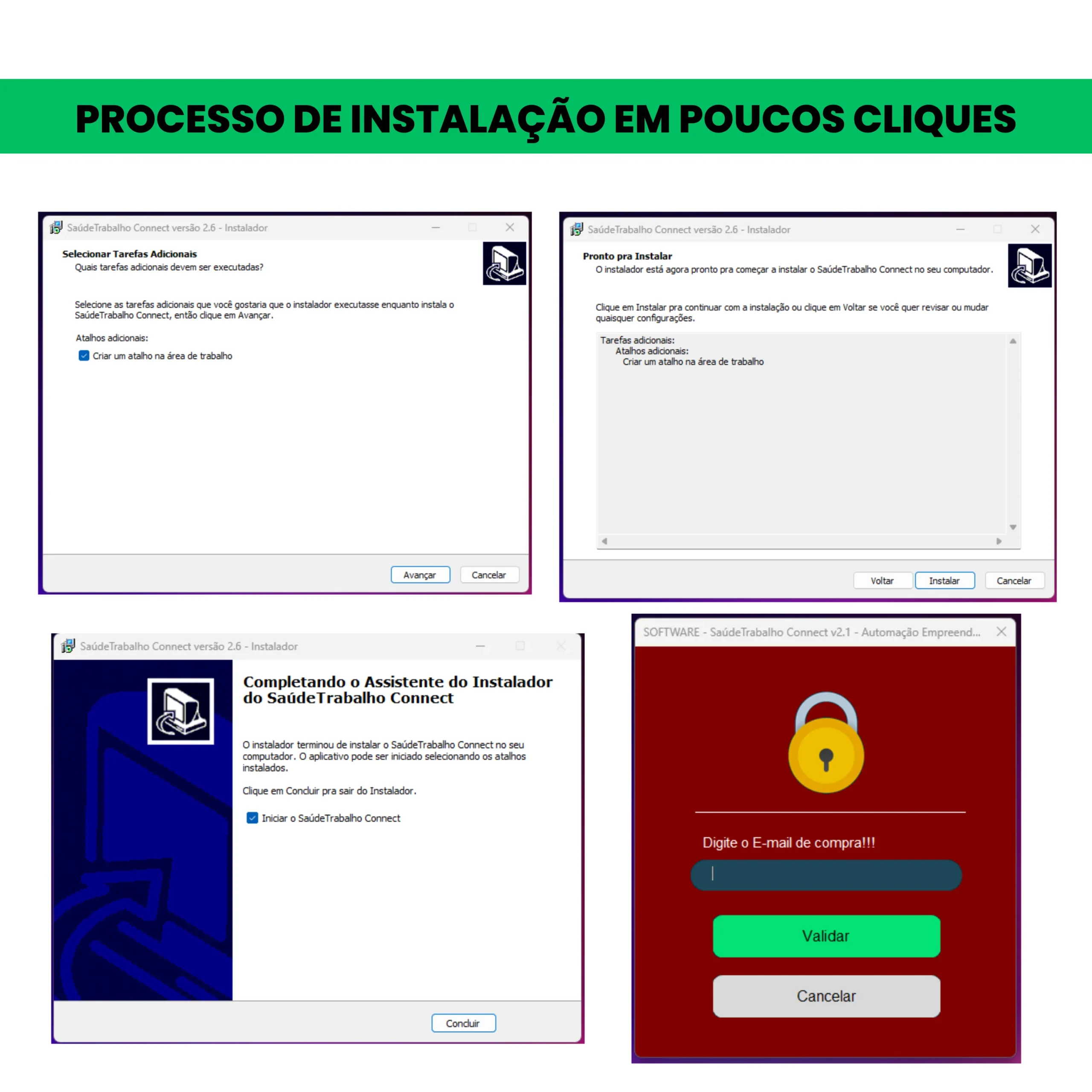A instalação é muito simples, é so baixar o instalador e executar com 2 cliques e ir avançando, cria automaticamente um icone de atalho na area de trabalho do seu computador. Caso o cliente tenha alguma dificuldade para instalação, é so chamar nosso suporte via whatsapp, pelo link disponibilizado dentro da plataforma, que a instalação é realizada de imediato remotamente.
